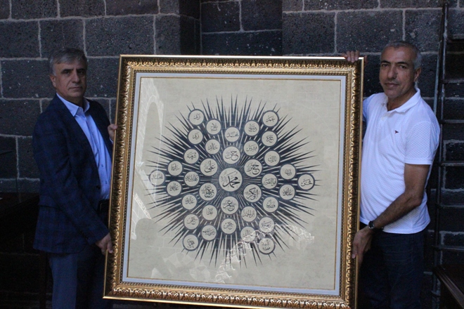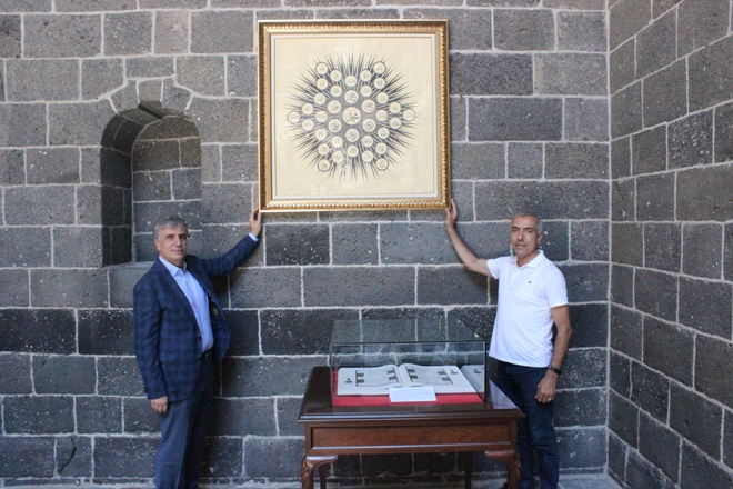 Diyarbakırlı tanınmış hat sanatçısından,ikinci kuşaktan öğrencisi olduğu Diyarbakırlı ünlü hattat Hamit Aytaç’ın eğitim aldığı tarihi Mesudiye Medresesi’ne anlam dolu hediye. Yurt içinde ve yurt dışında bir çok önemli çalışmaya imza atan,aynı zamanda hat eğitmeni olan ve bir çok öğrenci yetiştiren Mehmethan Akan,kendi el emeği ve göz nuru olan eseri,ilham kaynağı olan Hamit Aytaç’ın eğitim aldığı Mesudiye Medresesi ve İslam aleminin beşinci haremi şerifi olarak kabul edilen tarihi Ulu Cami’ye atfetti.