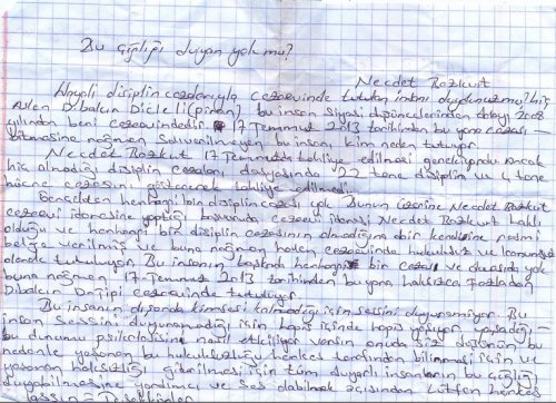Konuya ilişkin bir haber ajansına mektup gönderen Bozkurt, traji-komik hak ihlali hikâyesini anlattı. Bozkurt mektubunda, 17 Temmuz 2013 tarihinde kendisine verilen cezayı tamamlamış olmasına rağmen, "hayali" disiplin ve hücre cezaları gerekçe gösterilerek tahliye edilmediğini belirtti. "Bu çığlığı duyan yok mu?" başlığıyla yazdığı mektubunda Bozkurt, "Hayali disiplin cezaları ile cezaevinde tutulan insanı duydunuz mu? 2008 yılından beridir cezaevindeyim. Cezam bitmesine rağmen salıverilmedim. Beni kim neden tutuyor? 17 Temmuz'da tahliye edilmem gerekiyordu. Ancak hiç almadığım 22 tane disiplin ve 4 hücre cezası gerekçe gösterilerek tahliye edilmedim. Oysa aldığım her hangi bir ceza yok" dedi.
