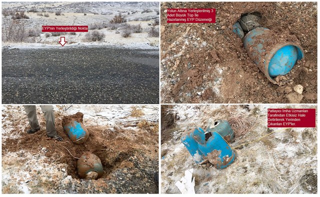 Diyarbakır’ın Hazro İlçesi’nde İlçe Jandarma Komutanlığına bağlı askerler, yaptıkları yol denetimlerinde karayolu kenarına gömülü 3 adet el yapımı patlayıcı buldu.
