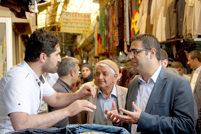 Çarşıya Şewiti’deki esnafların tamamına yakını ile birebir görüşen ve esnafların sorularını yanıtlayan DBP, HDP heyeti, esnaf ziyaretinin ardından Dicle Fırat Kültür Merkezine gitti.