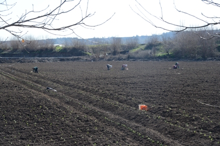 Hevsel Bahçelerinde bahar sıcağında elle tek tek marul ekimi yapan kadın işçiler gün boyu tarlada ter döktüler. Belki de 8 Mart’ın dahi geldiğinden haberi olmayan kadınların tek derdi biran önce işlerini bitirip evlerine dönmekti. Bahar sıcağında sabahtan akşama tarlada bata çıka çalışan kadınlar elleriyle toprağı kazarak marul fidelerini ekiyorlar.