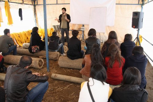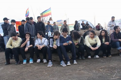 DİYARBAKIR - Hewsel Bahçeleri'nde ağaç kıyımına karşı BDP Gençlik Meclisi, DÜÖ-DER ve MEGAM-DER öncülüğünde başlatılan nöbet eylemi 13. gününde sürüyor. Nöbette, İstanbul'da Gezi Parkı direnişi sırasında polisin attığı gaz bombasıyla yaralanan ve 269'uncu gününde yaşamını yitiren Berkin Elvan için yas tutuluyor. Berkin için ezgiler seslendirilirken, eylemin başladığı günden bu yana halaya duran gençler, yas nedeni ile halaya ara vermiş durumda. Güne erken saatlerde çevre temizliği ile başlayan gençler, kurdukları çadırlarda atölyeler düzenliyor. Bu gün Ekoloji Çadır'ında TZP KURDİ'ye bağlı Kürtçe öğretmen tarafından ilk kez dil eğitimi verildi. "Doğa ve ekoloji" konulu derste gençlere ders veren öğretmen Kenan Colemergi, bu güne kadar doğa ile ilgili olarak Kürtçe terimlerin kullanılmadığını belirterek, "Bunu anlatmanın en iyi yerin burası olduğunu düşündük. Burada kesilen ağaçların Kürtçe isimlerini ve buna ait kullanımların eğitimini vermeye çalıştık" dedi.
