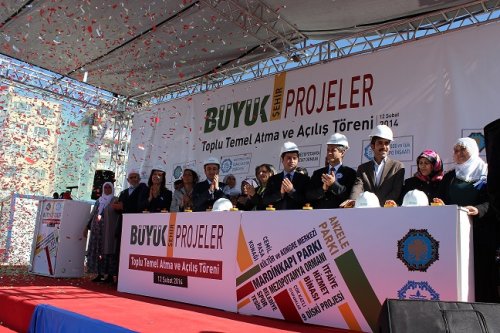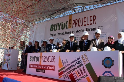 DİYARBAKIR Büyükşehir Belediyesi’nce, merkez Yenişehir İlçesi’nde yapılacak olan 2 bin kişilik Kültür ve Kongre Merkezi’nin temel atma töreni gerçekleştirildi. Törene, BDP Eş Genel Başkanı Selahattin Demirtaş, Demokratik Toplum Kongresi (DTK) Eş Başkanı Aysel Tuğluk, Mardin Milletvekili Gülser Yıldırım, Diyarbakır Büyükşehir Belediyesi Eş Başkan Adayları Gültan Kışanak ve Fırat Anlı, Şanlıurfa Büyükşehir Belediyesi Eş Başkan adayı Osman Baydemir, BDP il ve ilçe yöneticileri, iş insanları, din adamları, Barış Anneleri İnisiyatifi temsilcileri ve çok sayıda yurttaş katıldı.