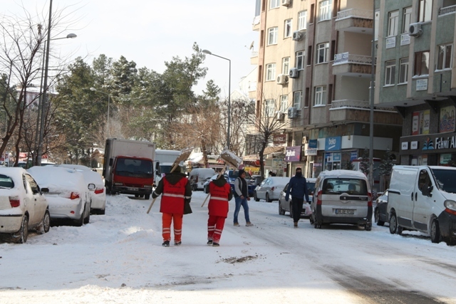 Açıklamada, “Hastane ve sağlık ocaklarının bulunduğu caddelerde kar temizleme çalışmalarına ağırlık verilirken, yayalar için de kaldırımlardaki kar temizleniyor. Kardan temizlenen kaldırımlar vatandaşlar tarafından rahatlıkla kullanılırken, ekipler, tüm bulvar ve cadde kaldırımlarını kardan temizledikten sonra buzlanmaya karşı tuzlama ve solüsyon çalışmalarına ağırlık verecek” ifadelerine yer verildi.