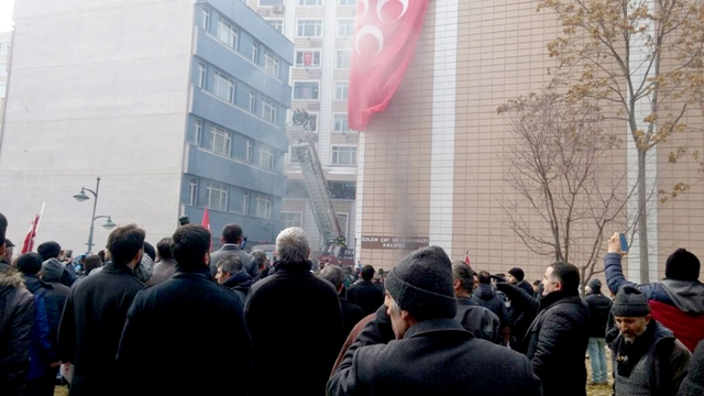 Kayseri’de sabah saatlerinde meydana gelen patlamanın ardından vatandaşlar Cumhuriyet Meydanına akın ederken, bir grup vatandaş da HDP binasına saldırdı. Polisin durdurmaya çalıştığı vatandaş, slogan atarak zorla binaya girmeye çalıştı. Polis ekipleri bina çevresindeki önlemlerini artırdı.