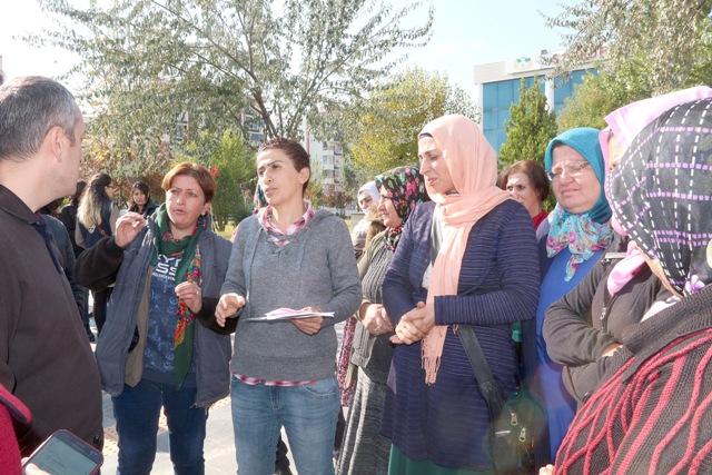 Diyarbakır kadın semt pazarı çalışanları Bağlar Belediyesi tarafından beş yıl önce kendilerine verilen pazar alanlarına erkeklerin girmesini istemiyor. Bağlar Belediyesi ile yaptıkları görüşmelerin bir sonuç vermediğini ve Pazar alanları içinde erkek pazarcılara yer verildiğini ve bu durumu kabul etmedikleri belirten kadın pazarcılar bir açıklama yaptı.