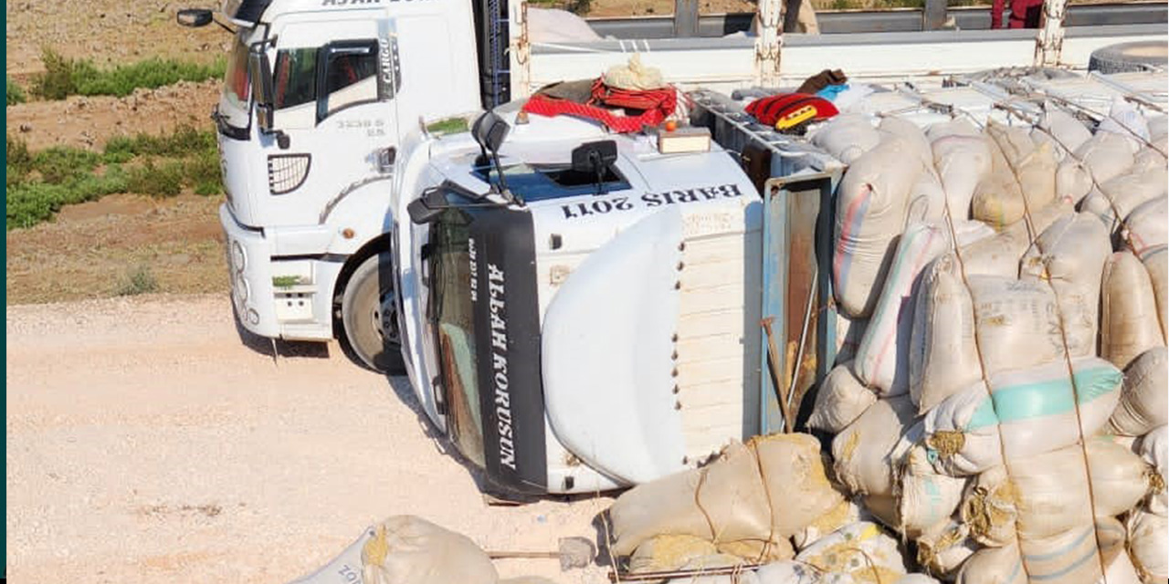 Devrilen kamyondan atladılar, canlarını kurtardılar