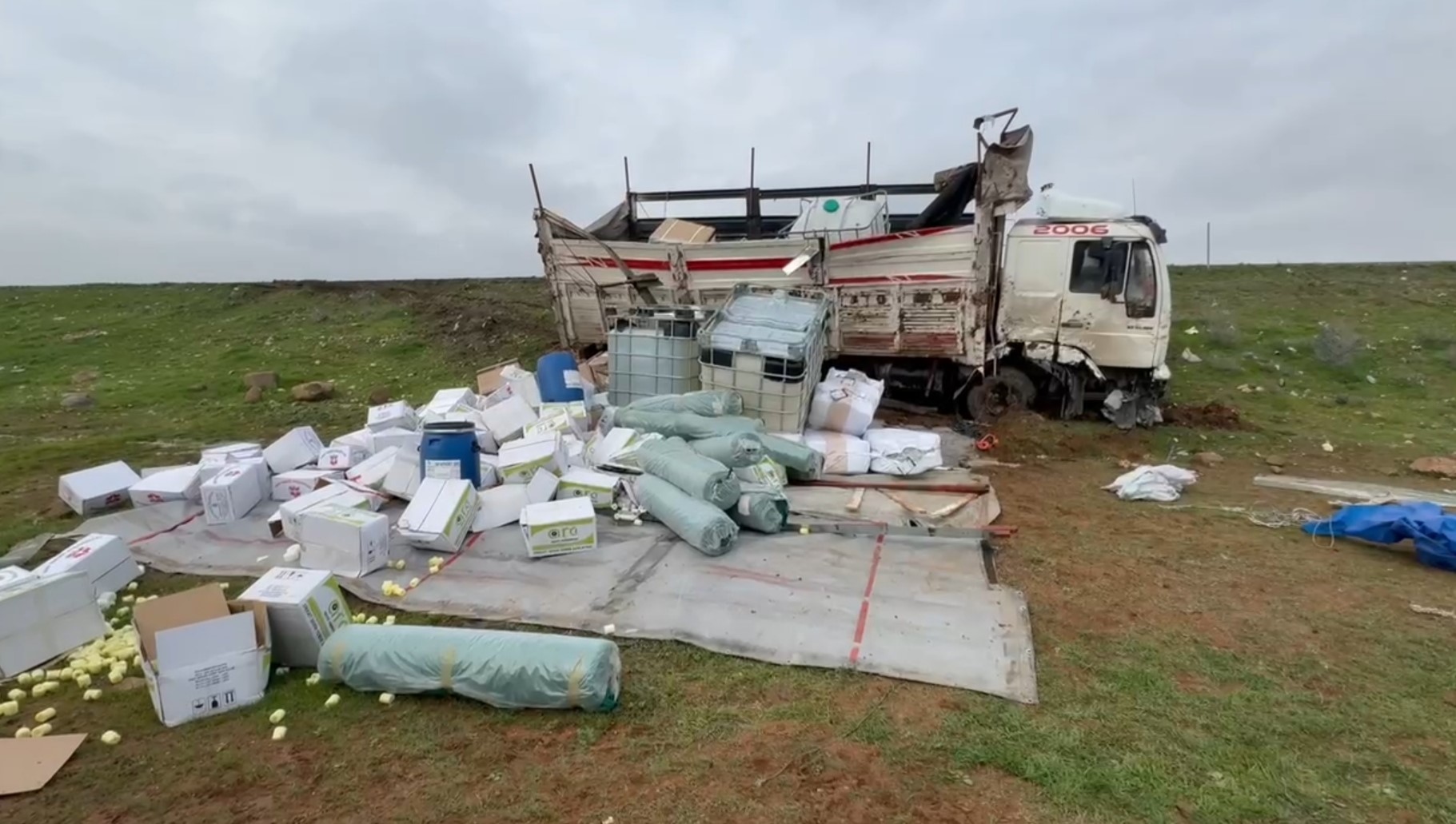 El frenini çekmedi, kamyon şarampole yuvarlandı