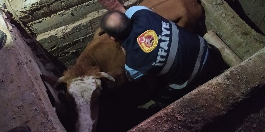 İneğin zarar görmeden kurtarıldığını söyleyen İtfaiye Müdürü Misbah Yılmaz, akşam karanlığında otlarken kanalizasyon çukuruna düşen ineği uzun uğraşlar sonucu kurtardıklarını söyledi.