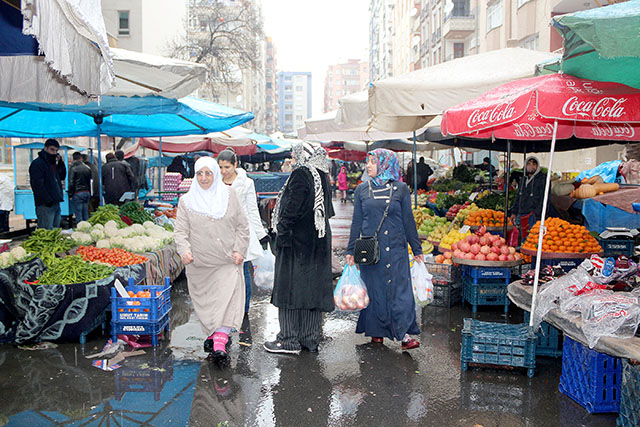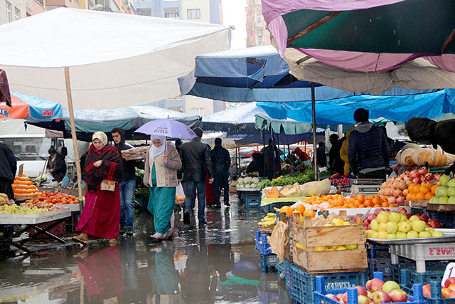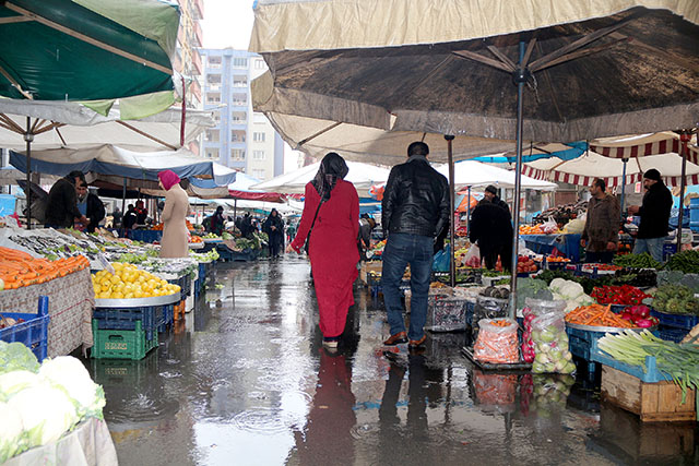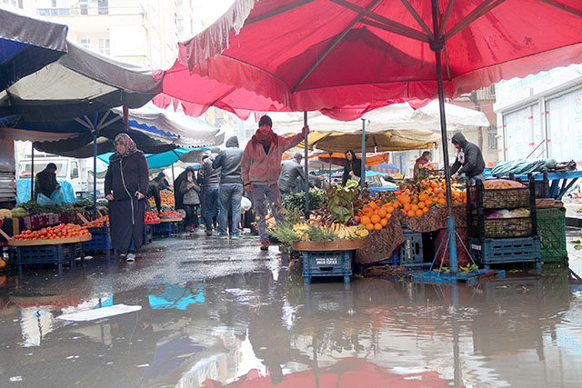 Vatandaşlar su birikintileri arasında Pazar alışverişini sürdürürken, Pazar çilesini her zamanki gibi en çok kadınlar yaşadı.