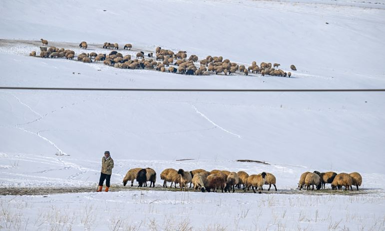 Vatandaşlar sürüdeki kuzuları kucaklarında taşıdılar