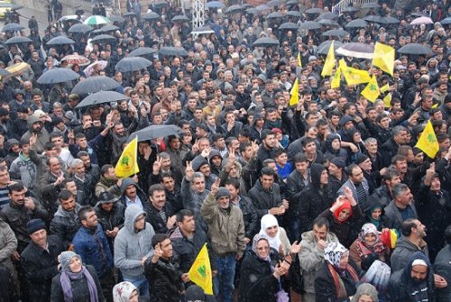 MUŞ - Berkin Elvan için yapılan protesto eylemlerine yapılan polis müdahalesine değinerek, BDP'nin Serhat bölge miting ve selamlama programları kapsamında Erzurum mitinglerinin ardından Muş'un Varto ilçesine geçildi. BDP heyeti, Varto girişinde yüzlerce araçlık konvoyla karşılandı. Yoğun kar yağışına rağmen ilçe meydanında bir araya gelen binlerce kişi, "Öcalan", "Şehit namırın", "Bijî berxwedana zindana" sloganları attı. Paris'te katledilen üç Kürt kadın siyasetçi Sakine Cansız, Leyla Şaylemez, Fidan Doğan'ın fotoğraflarının bulunduğu dövizler açıldı. BDP Varto Belediye başkan adayları Hüseyin Güneş, Sabite Ekinci, BDP Muş Milletvekili Demir Çelik, BDP Ağrı Belediye Eş Başkan adayı Sırrı Sakık ile BDP PM ve MYK üyelerinin halkı selamlamasının ardından BDP Genel Başkanı Selahattin Demirtaş söz aldı.