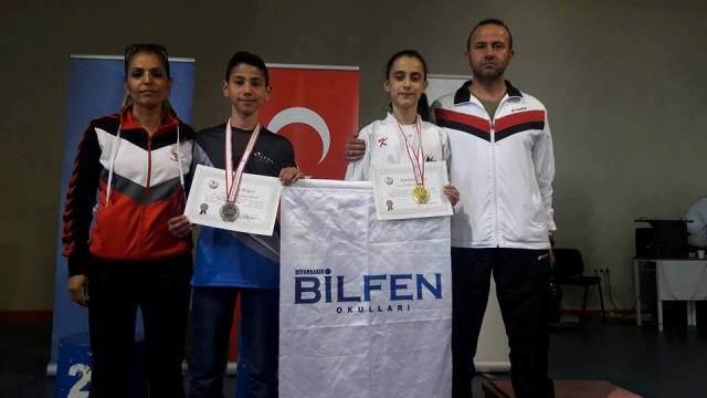 Diyarbekirspor’lu karateciler,Şanlıurfa’da yapılan Türkiye Küçük Yıldızlar Okullar Arası Karete Şampiyonası’nda başarıdan başarıya koştu. Filfen okulları adına şampiyonada mücadele eden Amine Akçakmak ve Muhammed Yusuf Yazar,Vali Kurt ismail Paşa Okulu’ndan Ece Erdoğan ile Mesut Yılmaz Ortaokulu’ndan Sena Kızılaslan 2 altın ve 2 gümüş madalya alarak önemli bir başarıya imza attı.
