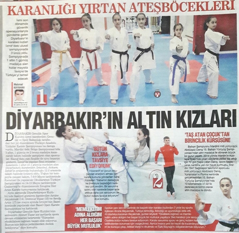 Diyarbekırspor’un karate branşı katıldığı yurt içi ve yurt dışı müsabakalarda üst üste elde ettiği başarılarla tarih yazmaya devam ediyor. Son olarak İzmir’de yapılan Türkiye Yıldızlar Şampiyonası’nda Diyarbekirspor’lu Amine Akçakmak ikinci ve Sena Kızılaslan da beşinci olarak Diyarbakır karmasının takım halinde Türkiye üçüncülüğü kazanmasında büyük rol oynadı.