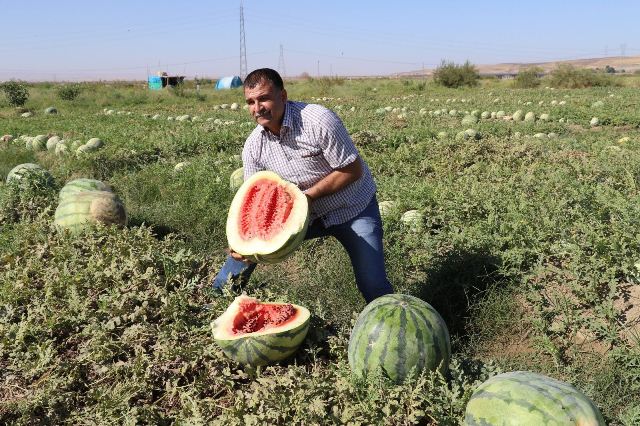 Bismil’de humuslu arazide Mart ayında ekimi gerçekleştirilen karpuzların ağırlığı 52 kiloya ulaştı. Her biri en az 40 kiloyu geçen ve iki kişi tarafından zor taşınan karpuzlar, tarladan titizlikle toplanarak araçlara aktarıldı. Tarladaki karpuzları inceleyen Bismil Kaymakamı ve Belediye Başkanı Turgay Gülenç, tarlada çapa yaparak ve karpuzları taşıyarak çalışanlara yardımcı oldu. Çoğu sergilenmek üzere kurumlara verilecek olan karpuzların büyüklüğü ve kalitesi beğenildi.