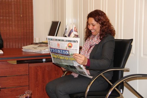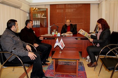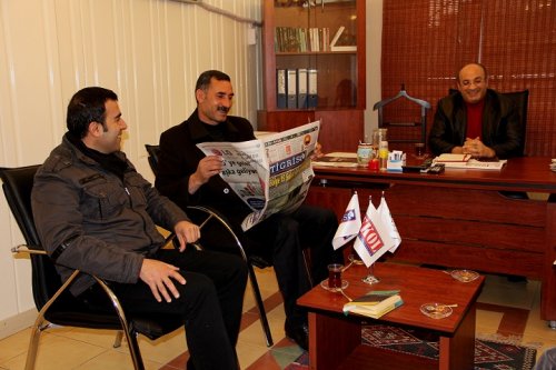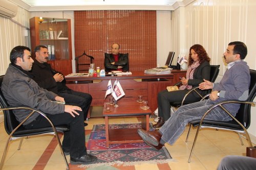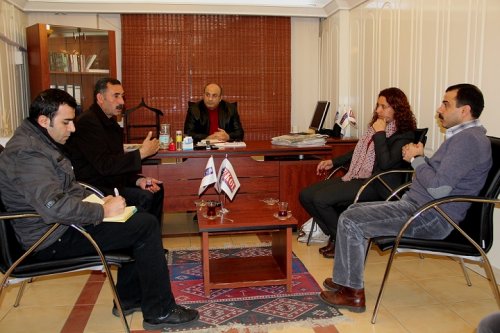 DİYARBAKIR - BDP Diyarbakır merkez Sur İlçe Belediyesi Eş Başkan adayları Seyit Narin ve Fatma Şık gazetemizi ziyaret etti. Tigris Haber Gazetesi imtiyaz sahibi Ahmet Tanaman, Yayın Danışmanı Mehdi Tanaman ve Genel Yayın Yönetmeni Haci Güneş ile fikir alışverişinde bulunan eş başkan adayları, projelerini anlattı.