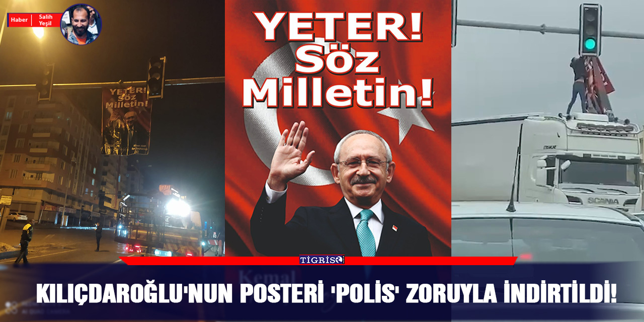 TİGRİS HABER - Dün gece CHP lideri Kemal Kılıçdaroğlu'nun Diyarbakır'ın Silvan ilçesinde karayolunun üst geçidine asılan posteri, partililer tarafından tekrar indirildi. CHP Diyarbakır İl Başkanlığı sosyal medya hesabından yaptığı açıklamada, posterin izin alınarak asıldığını ve daha sonra polis tarafından zorla indirildiğini duyurdu. CHP Diyarbakır İl Başkanlığı tarafından sosyal medya hesabından yapılan açıklamada, "14 Mayıs’ın Cumhurbaşkanı Kılıçdaroğlu’nu engelleyemeyeceksiniz. Silvan’da dün gece polis nezaretinde, izinli olarak asılan Kemal Kılıçdaroğlu’nun “Yeter söz milletin” posteri, bugün polis zoruyla indirildi. İlçe Teşkilatımıza baskı yapan polisler, pankartımızı indirtti." ifadeleri kullanıldı.