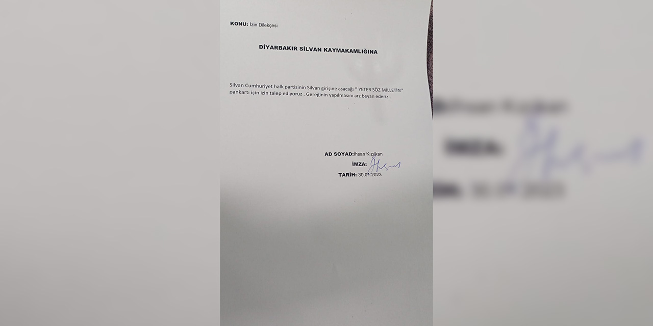 Konuya ilişkin yazılı açıklama yapan CHP Diyarbakır İl Başkanlığı tarafından yapılan yazılı açıklamada ise "Cumhuriyet Halk Partisi (CHP) Genel Başkanı Kemal Kılıçdaroğlu’nun resminin bulunduğu 'Yeter, söz milletin' pankartı. Silvan’da izin alınarak asıldığı yerden, polis zoruyla indirildi. CHP Silvan İlçe Başkanı İhsan Kızılkan, CHP Lideri Kemal Kılıçdaroğlu’nun resminin yer aldığı 'Yeter, söz milletin' sloganını içeren pankartı asmak için, Kaymakamlığa yazılı olarak başvuruda bulundu. Alınan izin sonrasında söz konusu pankart, polis nezaretinde, karayolunda trafik kesilerek vinç vasıtasıyla Diyarbakır Caddesi üzerine asıldı. Ancak dün gece izinli olarak asılan pankart, bu sabah kimilerini rahatsız etti. Polisler, İlçe Başkanı Kızıltan’a baskı yaparak, pankartın indirilmesini istedi. Yöneticilerimiz, pankartı indirmek zorunda kaldı. CHP Diyarbakır örgütü olarak, bu tür dayatmaları kabul etmiyoruz. Kemal Kılıçdaroğlu’nun posterini indirerek, gözden ırak edebilirsiniz ama şunu iyi bilin. Kılıçdaroğlu bölge halkının gönlünde taht kurmuştur. Cumhuriyetimizin ikinci yüz yılının ilk Cumhurbaşkanı olacaktır. Bunu bilin ve kabullenin. Böyle ucuz oyunlarla, pankart indirmelerle bizleri mücadelemizden ve azmimizden eksiltemeyeceğiniz gibi yenilgiden de kurtulamayacaksınız." ifadelerine yer verildi.