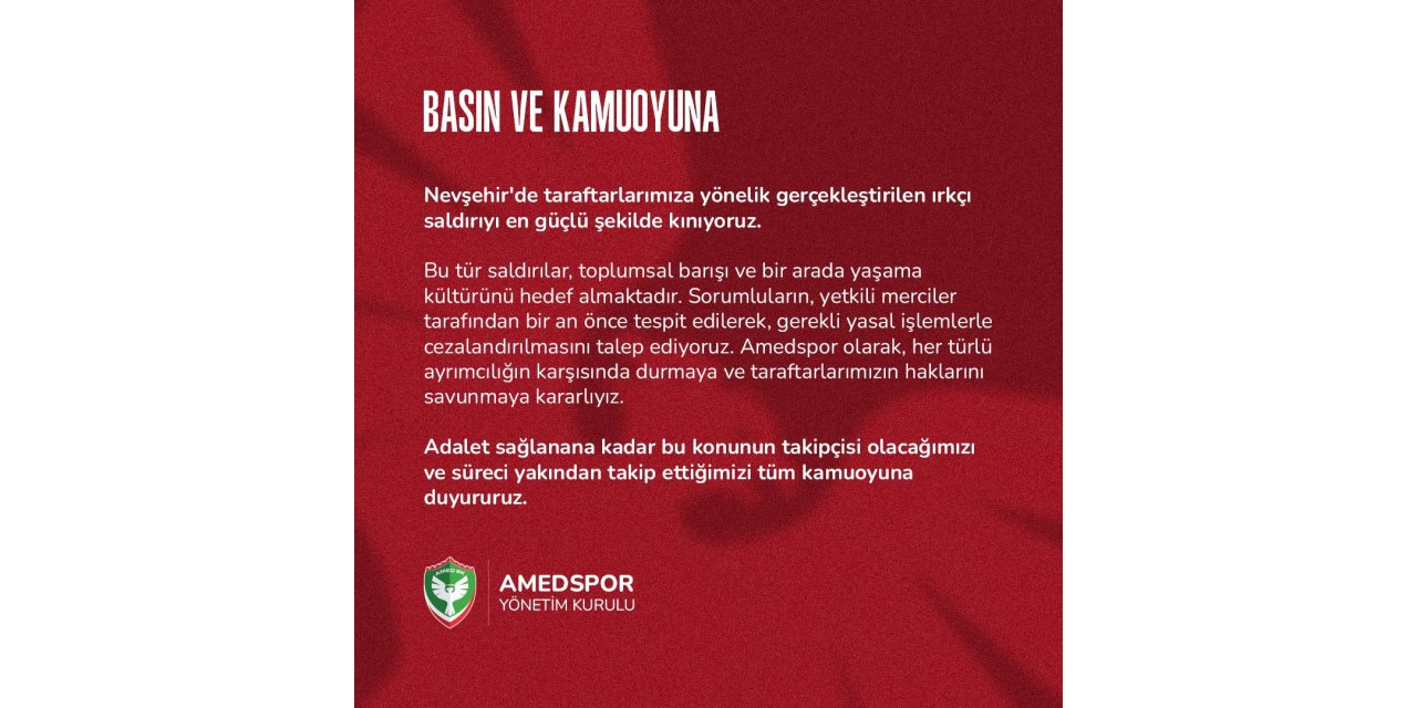 Amedspor, Nevşehir'deki saldırıyı kınadı