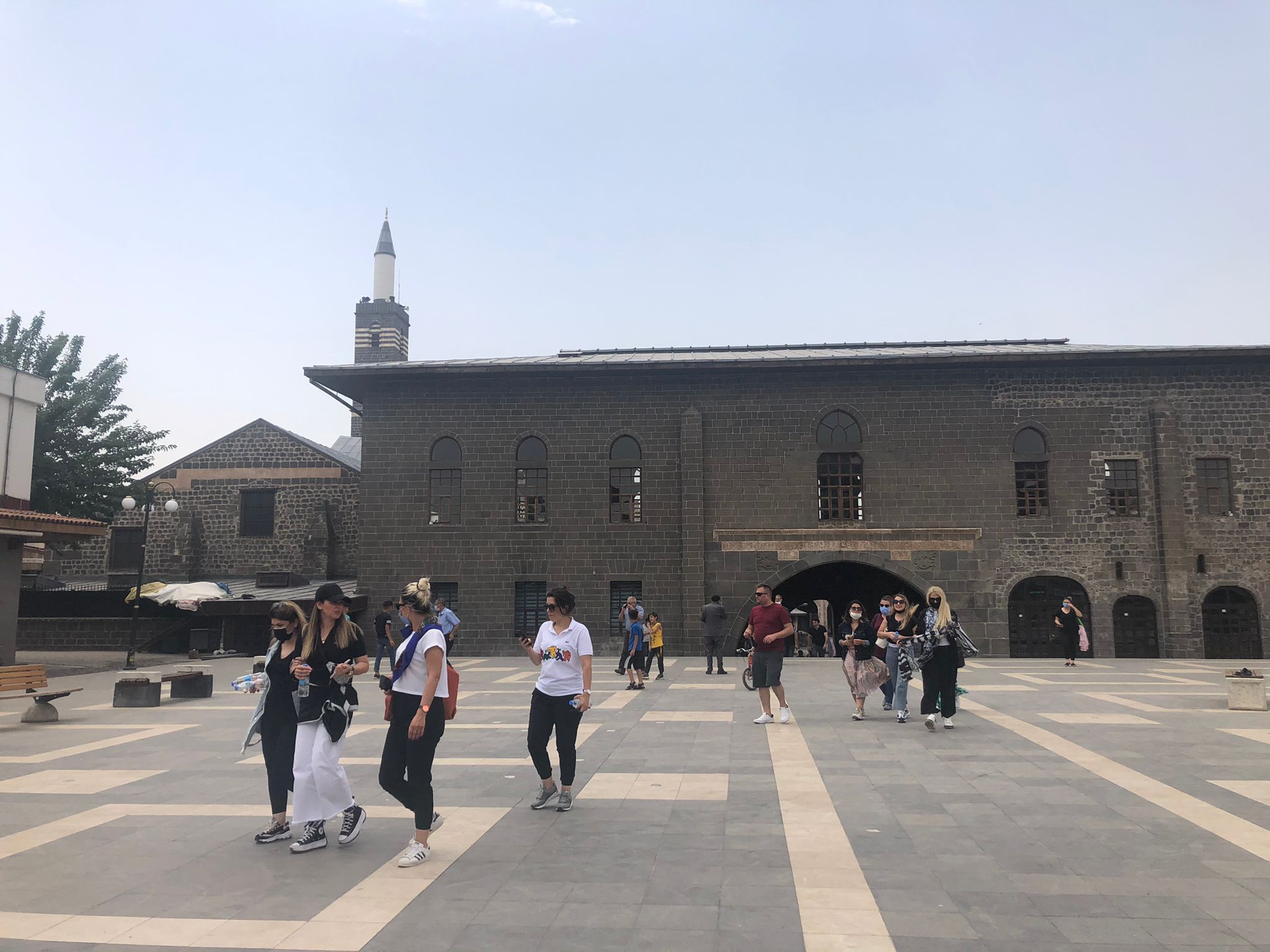Kısıtlamada muaf olan turistler Diyarbakır’da tarihi mekanları gezdi