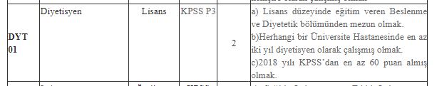 TİGRİS HABER - Dicle Üniversitesi Rektörlüğü Personel Daire Başkanlığı, Haziran ayında sözleşmeli 2 diyetisyen alımı için duyuruda bulundu. Personel alımı ile ilgili duyuruda, “Üniversitemiz Hastanelerinde istihdam edilmek ve giderleri Özel Bütçeden karşılanmak suretiyle, 657 sayılı Devlet Memurları Kanununun 4. maddesinin (B) maddesine göre tam zamanlı olarak çalıştırılmak üzere, 28.06.2007 tarihli ve 26566 sayılı Resmi Gazete ‘de yayımlanan Sözleşmeli Personel Çalıştırılmasına İlişkin Esaslarda Değişiklik Yapılmasına Dair Esaslarda yer alan Ek 2. Maddesinin (b) fıkrasına göre KPSS (B) grubu puan sırası esas alınmak suretiyle, aşağıda belirtilen unvan ve nitelikle sözleşmeli personel alımı yapılacaktır” denildi.