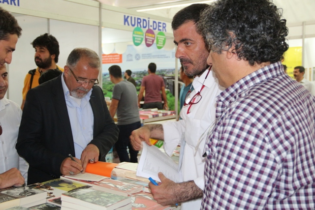 2. Amed kitap fuarına kitapseverlerin yoğun ilgisi yaşanırken, Rojavalı Şair, yazar Ehmed Huseyni de okurlarına kitaplarını imzaladı.
