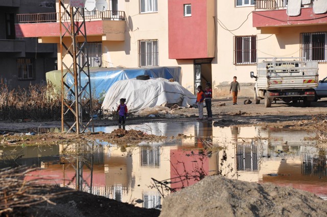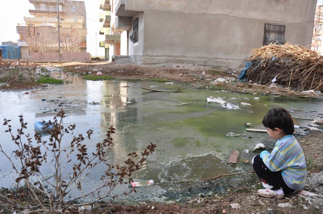 Mahallenin yol ve kanalizasyonun olmadığını anlatan Cihan Aktaş, “Çocuklarımız perişan. Her yer çamur. Kokudan, hastalıktan çocukları ayda bir hastaneye götürüyoruz. Bu pis sularla oynuyorlar, çıplak ayakla geziyorlar. Biz gördüğümüz zaman uyarıyoruz ama sürekli çocukların başında olamıyoruz. Tavuklarımız, ineklerimiz bu sudan içiyorlar. Onların yumurtasından, sütünden, ektiğimiz domatesten, biberden hastalık kapmalarından korkuyoruz. Yetkililerin bir çare bulmasını istiyoruz” dedi.