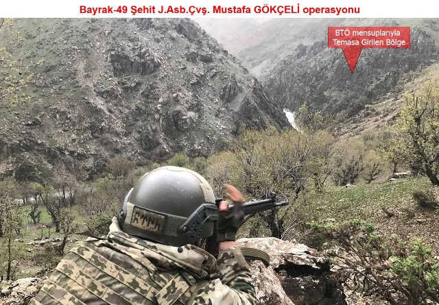Yapılan yazılı açıklamada, “Kulp ilçesi kuzeyinde 20 Nisan 2017 Perşembe günü saat 20.00’dan itibaren icrasına başlanılan Bayrak-49 Şehit J.Asb.Çvş. Mustafa GÖKÇELİ operasyonu 24 Nisan 2017 Pazartesi günü saat 04.00 da tamamlanmıştır. Söz konusu operasyon kapsamında; Kulp ilçesi Yaylak köyü Simetok mezrası mülki sınırları içerisinde 23 Nisan 2017 Pazar günü bir grup BTÖ mensubuyla sağlanan temas neticesinde (2) terörist etkisiz hale getirilmiş, (1) adet AK-47 Kaleşnikov Piyade Tüfeği, (1) adet RPG-7 Roketatar, (2) adet antitank roketatar mühimmatı ve sevk fişeği, (2) adet antipersonel roketatar mühimmatı, (3) adet el bombası, (4) adet AK-47 Kaleşnikov Piyade Tüfeği şarjörü, (120) adet AK-47 Kaleşnikov Piyade Tüfeği fişeği, (1) adet YAESU marka el telsizi, (4) adet sırt çantası, (1) adet ilk yardım çantası, (1) adet M-16 piyade tüfeğine ait tutamak, (200) kg yiyecek malzemesi ile çok sayıda örgütsel doküman ele geçirilmiş,
