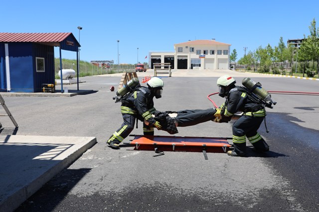 Teorik eğitimin tamamlanmasının ardından personeller, İtfaiye Daire Başkanlığı Kayapınar Grup Sahasında yangınlara, enkaz altı kurtarma ve doğal afetlere müdahale etmeyi pratik yaparak öğreniyor.
