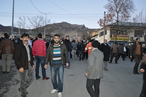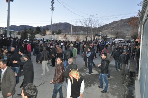 Araçların bulunduğu caddede kitle toplanmaya devam ederken, sık sık "Bijî serok Apo" sloganı atılıyor.
