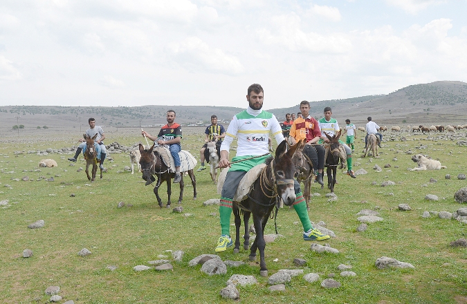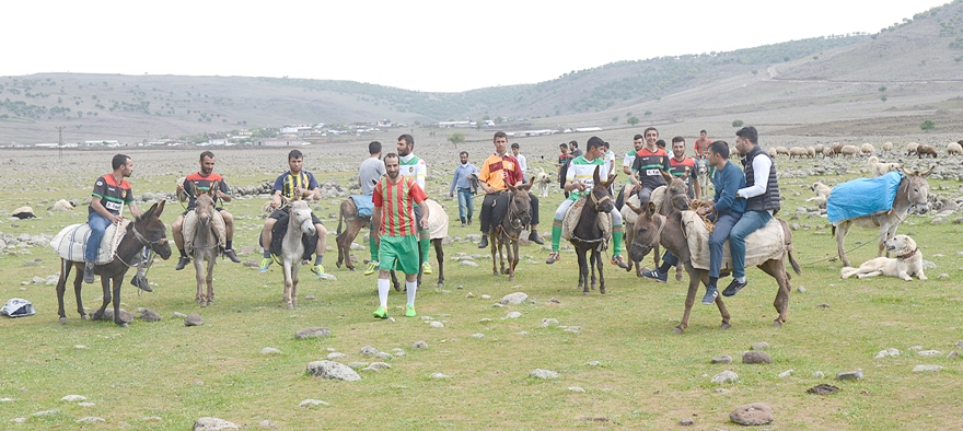 Diyarbakır’ın Çermik İlçesine bağlı Adalar Köyü’ndeki gençler, futbol sahasının köyden 3 kilometre uzakta olması nedeniyle maça eşek sırtında gidiyor. Gençler maç sonrası yine eşeklerle köye dönüyor.
