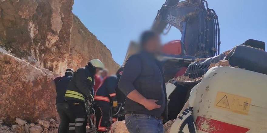 TİGRİS HABER - Olay, Derik Kızıltepe Viranşehir karayolu Soğukkuyu Mahallesi mevkisinde meydana geldi. Edinilen bilgilere göre, kazı yapan özel bir firmaya ait iş makinesinin üzerine çalışmalar sırasında kopan kaya parçasının düşmesi sonucu makine devrildi. Olayda iş makinesindeki 2 işçi tonlarca ağırlıktaki makinenin altına kaldı. Olayı fark eden diğer işçiler bir yandan yardıma koşarken bir yandan durumu sağlık, itfaiye ve jandarma ekiplerine haber verdi. Olay yerine gelen Mardin Büyükşehir Belediyesine bağlı Derik itfaiyesi grup amirliği ekipleri, Sinan Dinç isimli kişiyi yaralı çıkarırken ismi öğrenilmeyen diğer kişinin ise cansız bedenine ulaştı.
