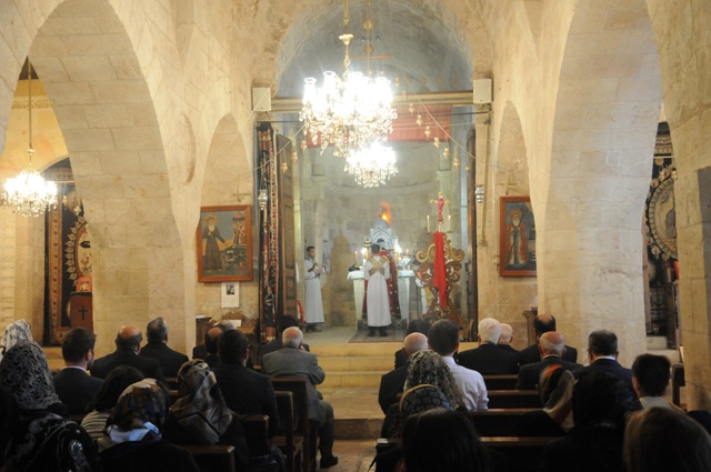 Mardin Valisi Mustafa Yaman, AK Parti Mardin Milletvekili Ceyda Bölünmez Çankırı, İl Jandarma Alay Komutanı Albay Ahmet Zafer İzcan, İl Emniyet Müdürü Hasan Onar, kilisenin kabul salonunda Süryanilerin bayramını kutladı.