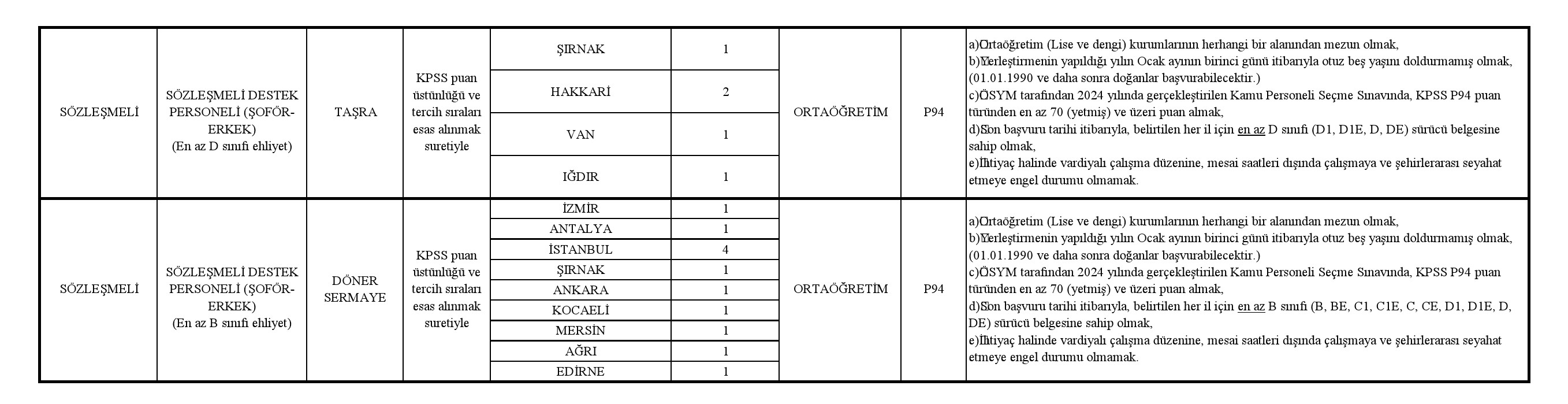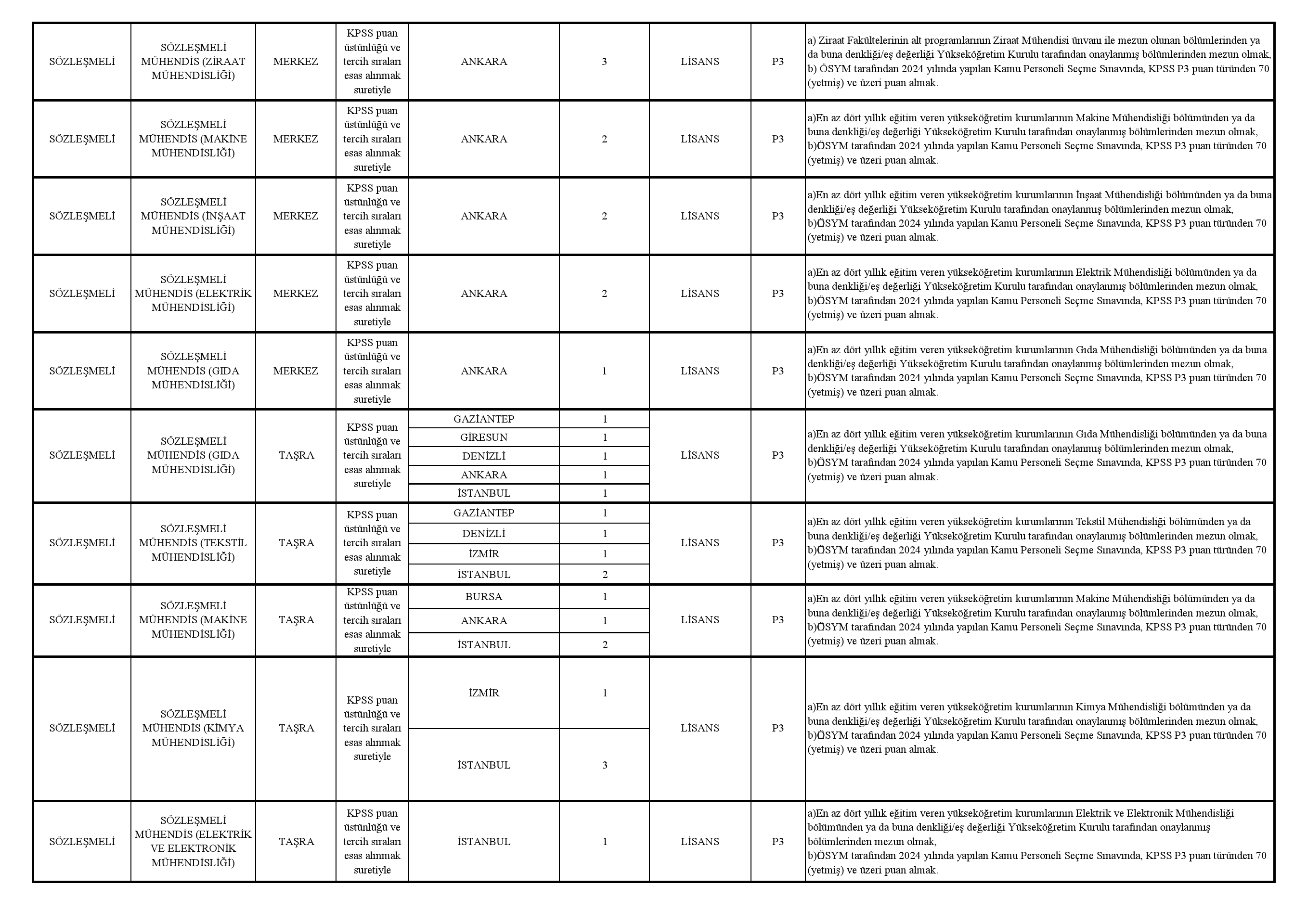 • Başvurular Ek listede belirtilen iller ve pozisyonlar bazında adayın tercihine göre yapılacak olup her aday il sayısı kadar tercih yapabilecektir.