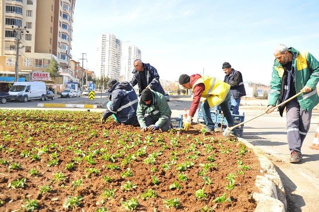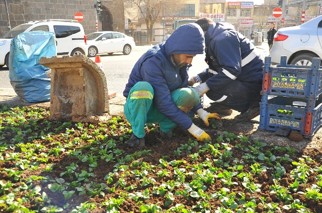 Büyükşehir Belediyesi, Dağkapı, Selahattin Eyyübi ve Toplu Konut kavşaklarına 5 bin 200 adet mevsimlik çiçek dikerek yeşil alanlardaki çalışmalarını sürdürüyor.