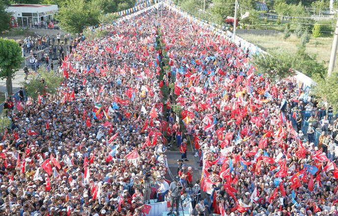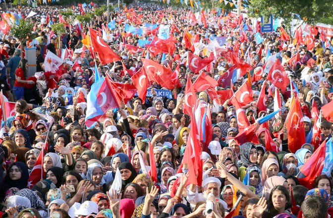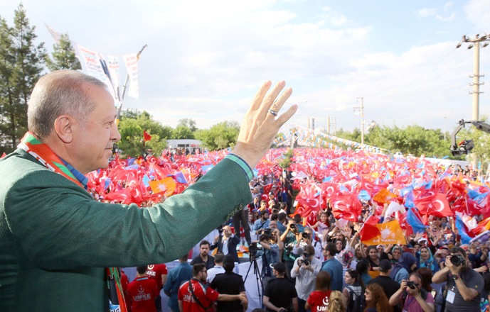 Cumhurbaşkanı Recep Tayyip Erdoğan, 24 Haziran’da yapılacak Cumhurbaşkanlığı ve milletvekilliği seçimleri nedeniyle İstasyon meydanında düzenlenen mitingde konuştu. MHP’lilerin de destek verdiği mitinge binlerce kişi katıldı. Erdoğan’ın mitingine MHP’liler de destek verdi.