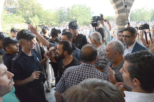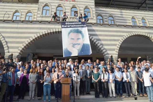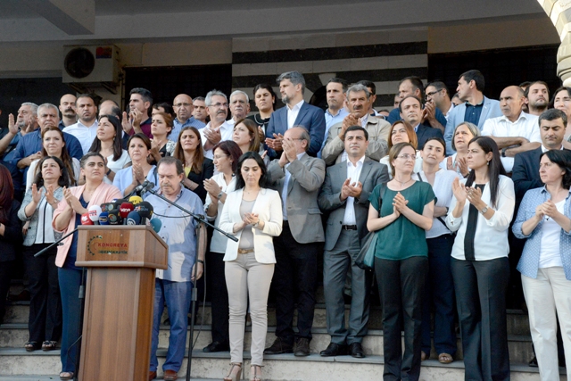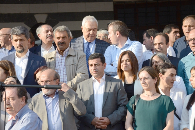 HDP, DTK, KJA, DBP ve HDK’nin eş başkanları ve eş sözcüleri Diyarbakır’da yaşanan sürece ilişin açıklama yaptı. Hazırlanan ortak deklarasyonu okuyan DTK Eş Başkanı Hatip Dicle, “Gün eylem günüdür” diyerek, 5 Eylül’de süresiz ve dönüşümsüz açlık grevine başlayacaklarını açıkladı. Dicle, “Bu açlık grevinin tek talebi vardır; Sayın Öcalan ile hukuk kuralları çerçevesinde görüşme yapılmasıdır” dedi.