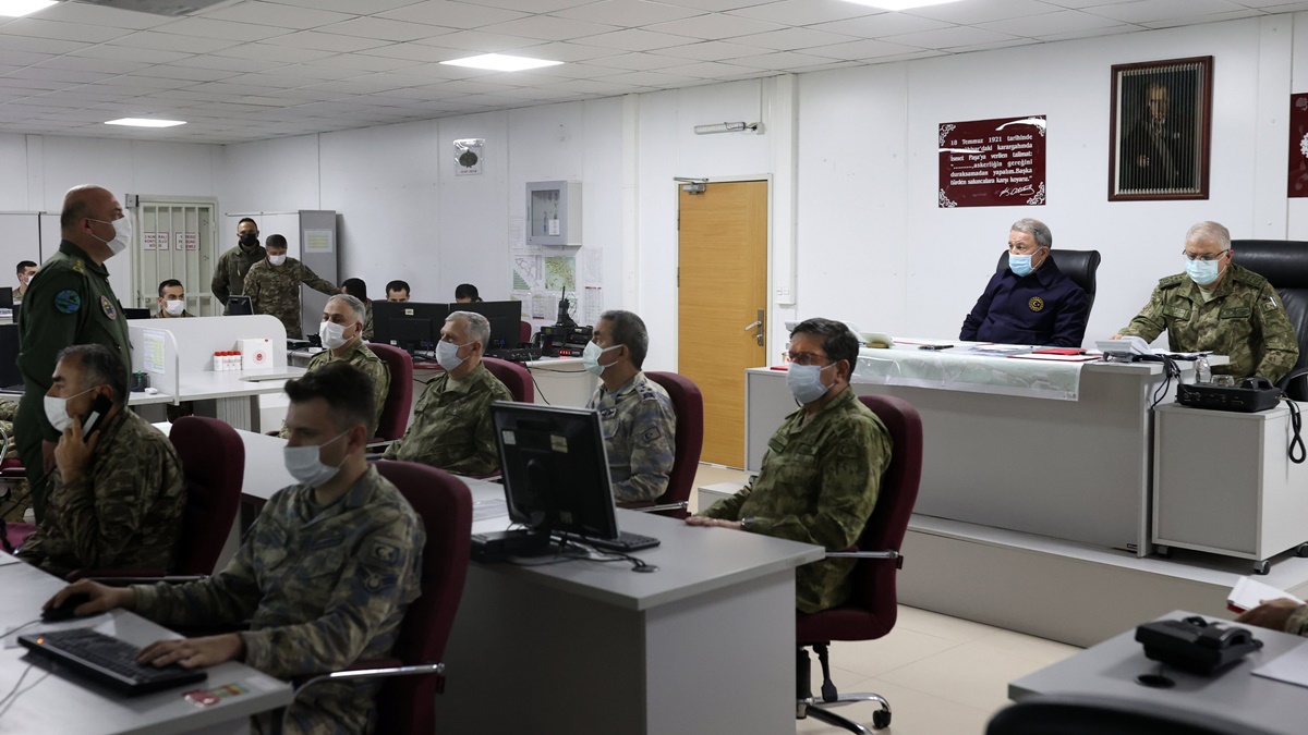 Milli Savunma Bakanı Hulusi Akar ve üst düzey komutanlardan, Genelkurmay Başkanı Orgeneral Yaşar Güler, Kara Kuvvetleri Komutanı Orgeneral Ümit Dündar, Deniz Kuvvetleri Komutanı Oramiral Adnan Özbal ve Hava Kuvvetleri Komutanı Orgeneral Hasan Küçükakyüz ile Irak'ın kuzeyi Gara bölgesinde PKK'ye yönelik sürdürülen Pençe Kartal-2 Harekatı'nın sevk ve idare edildiği sınır hattındaki Harekat Merkezi'ndeydi.