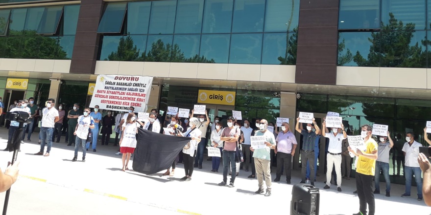 SES, Tabip Odası, Diş hekimleri odası, Eczacılar Odası, Shuder Diyarbakır ve Mezopotamya Psikologları İnsiyatifi’nden oluşan Diyarbakir Saglık Platformu bugün Dicle Üniversitesi Başhekimliği önünde yaptığı basın açıklaması ile sağlık emekçilerinin çalışma koşullarına dikkat çekti.