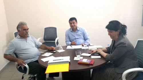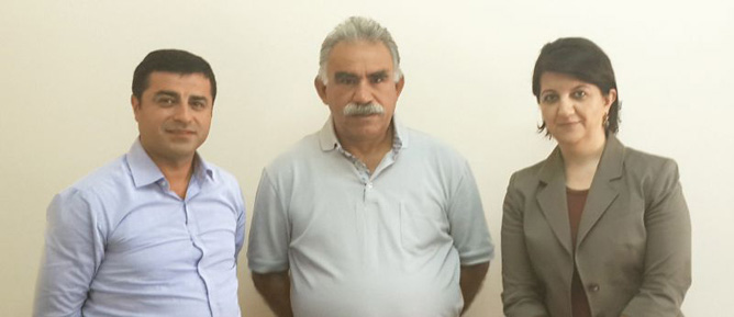 HABER MERKEZİ (DİHA) -BDP Eş Genel Başkanı Selahattin Demirtaş ve Grup Başkan Vekili Pervin Buldan'ın İmralı Adası'nda PKK Lideri Abdullah Öcalan'la yaptığı görümede çekilen fotoğrafların orjinali DİHA tarafından servis edildi. Demirtaş tarafından verilen fotoğraflarda sosyal medyada servis edilen fotoların aksine net görüntü ve Öcalan'ın gülümseyen yüzü dikkat çekiyor. Fotoğraflarda görüşmenin oldukça moralli geçtiği gözlemleniyor. Biri vesikalık olmak üzere toplam 5 kare fotoğraftan oluşan albümde Öcalan'ın kimi yerlerde güldüğü kimi yerlerde ise toplantıda konuşulanları dinlediği görülüyor.