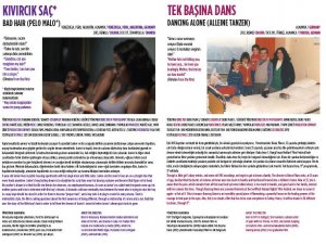 ANTEP - Nar Sanat Derneği, dünyada ilk kez gerçekleştirilen “Alternatif dağıtım ve paylaşım” projesi !f² kapsamında birçok ödüllü filmi sinemaseverlerle buluşturuyor. 21-22 ve 23 Şubat tarihleri arasında gösterime girecek olan filmler arasında şu eserler yer alıyor; Biene Pilavcı'nın eski VHS kayıtları ve küçük bir kız çocuğunun günlükleriyle başlayan hayat hikâyesinin izinde bir ailenin geçmişini arşınladığı ödüllü belgeseli "Tek Başına Dans"; Louise Archambault'un Locarno'dan Seyirci Ödülü alan dokunaklı aşk filmi "Gabrielle"; San Sebastian'da Büyük Ödül'ün yanı sıra Özel Mansiyon ve Selanik'ten FIPRESCI ve Jüri Özel ödüllerini kapan, başroldeki Samuel Lange'ın oyunculuğuyla seyircilerin kalbini fethedecek "Bad Hair/Kıvırcık Saç"; ünlü İtalyan aktris Valeria Golino'nun ödüllerle taçlandırılan ilk yönetmenlik denemesi "Honey/Bal" ve İran kökenli Riahi kardeşlerin birlikte yönettiği, insanlığın mücadele yöntemlerini FEMEN'den Wall Street'e, İspanyadaki konut mücadelesinden Mısır'a uzanan bir hikâye sarmalında anlatan "Everyday Rebellion/Her Gün İsyan".