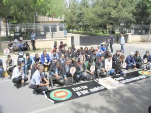 Diyarbakır Barosuna kayıtlı avukatlar, 168 gün önce öldürülen Tahir Elçi için adliye binası önünde oturma eylemi yaptı.