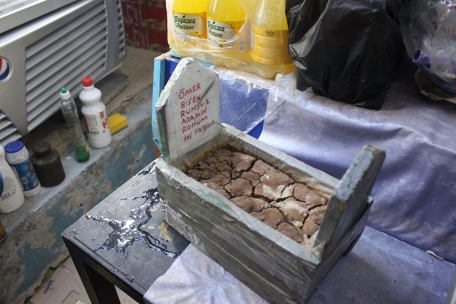 Merkez Artuklu ilçesinde bakkal işleten Ömer Bisen adlı esnaf, müşterilerine ölümü hatırlatmak için iş yerinde tahta ve topraktan yaptığı maket mezar sergiliyor. Üzerinde, “Ruhsuz adamın ruhuna iki Fatiha” yazan mezar, bakkala giren müşterilerin dikkatini çekiyor. 35 yıldır bakkal işlettiğini anlatan Bisen, “Ölümü hatırlatmak için maket mezar yaptım. Buradaki amacım ölümün bizi nerede ve nasıl beklediği belli değil. İyisi mi biz onu her yerde beklemeliyiz ve hatırlamalıyız” dedi.