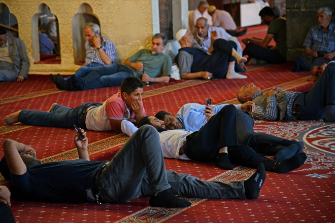 Oruçlu olmanın verdiği yorgunluk ile sıcak havalardan kaçan vatandaşlar ibadet etmek için geldikleri Ulu Cami’de serin ve gölge yerlerde uyuyarak namaz vaktini bekliyor. Bazı vatandaşların işi abartarak iftar saatine kadar uyuduğu camide ilginç görüntüler yaşanıyor. Camiye gelen vatandaşların bir kısmı durumu normal karşılarken, bir kısmı ise yaşlıların yorgun olabileceğini ancak gençlerin uyumaması gerektiği hususunda tepkisini dile getirdi.