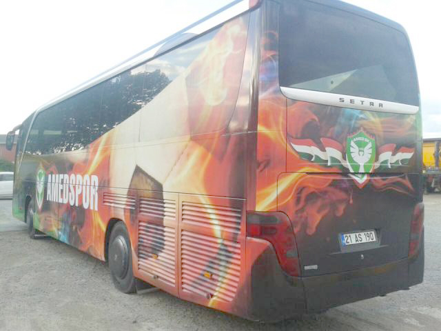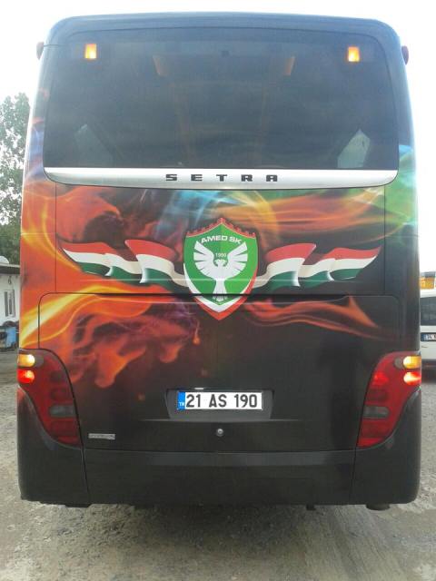 As Başkan Nurullah Edemen’in arkadaşı olan bir iş adamının katkılarıyla kazandırılan setra model otobüs için giydirme çalışmaları devam ediyor. Modern bir görüntüye büründürülen otobüs,Amedspor logosu ve renkleriyle donatılıyor.