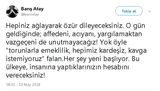 İşte Barış Atay'ın tehdit dolu paylaşımı: