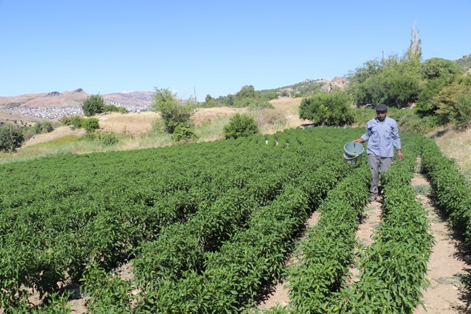 Beybağı Küme Evlerinde çiftçilikle uğraşan Mehmet Yosunkaya, Beybağı mevkiinin Çermik biberi için ideal bir yetiştirme alanı olduğunu ve biberin kendine has özelliğinin toprak ve bakımla ilgili olduğunu belirterek, “Birkaç yere gönderdik büyük ve siyah oldu. Ekmeyi bıraktılar. Başka birkaç yere daha gönderdik rengi beyaz oldu herhangi bir randıman alamadılar. Ya siyah oluyor rengi ya tadı bozuluyor ya da özelliğini bozuyor. O yüzden en güzel burada yetişiyor. Bunun işçiliği zor ve herkes yapamıyor. İlk çıktığı zamanlar çok pahalı oluyor. 20-30 TL’den başlıyor fiyatları. Şimdi normal fiyatı 3-4 TL arası. Diğer biberlerden farkı olarak tadı acı değil, fazla tatlı da değil. O yüzden millet çok istiyor. Eski hayvan gübresi kullanıyoruz. Turşu oluyor, yemekte kullanılıyor. Pul biber oluyor. Çermik biberi üretimi için destek istiyoruz. Suyumuz az. Suyumuz olsa bunun iki üç katı biber ekerim. Daha fazla ekimi olursa dışarıya göndeririz. Millet fayda görür. Biz burada bütçemize göre yapıyoruz. Tohumu biberden alıp poşete bırakıyoruz, ekiyoruz sonra tarlaya çekiyoruz. Bunun özelliği toprak ve bakım. Bakım olmazsa olmuyor. 2 dönüme 3-4 bin lira arası masraf gidiyor. Kazancımız belli değil. Bazen fiyat yüksektir bazen düşüktür. Gelirden evin ihtiyacını görüyoruz. Burada fazla su olursa fazla ekeriz. Daha güzel olur” dedi.