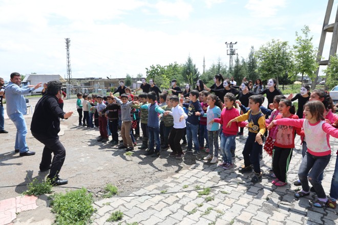 Diyarbakır Büyükşehir Belediyesinin 1. Çocuk Tiyatro Festivali ve Liselerarası Tiyatro Festivali programları kapsamında oluşturulan Pandomim Sanat Atölyesi, etkinliklerine devam ediyor. İlk gösterisini On Gözlü Köprü’de düzenleyen Pandomim Sanat Atölyesi, ikinci gösterisini Bağlar İlçesine bağlı Oğlaklı Mahallesi İlkokulunda okuyan öğrenciler için düzenledi.