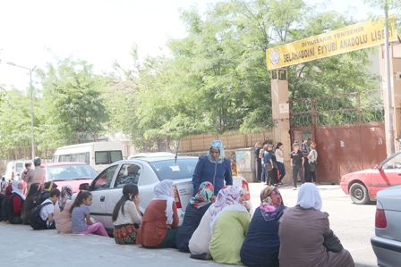 Diyarbakır’ın Yenişehir İlçesi Selahaddini Eyyübi Anadolu Lisesinde de "Parasız Yatılılık ve Bursluluk Sınavı" için içeride öğrenciler ter dökerken aileleri de dışarıda sınavın bitmesini bekledi. Öğrencilerini bekleyen kadın veliler okulun karşısındaki kaldırım kenarlarına oturup beklerken, erkek veliler ise yakındaki Çay ocağında sınavın bitmesini beklediler. Sınavın yapıldığı okulun karşısındaki gölgelik alanlarda bekleyişlerini sürdüren kadın veliler sınavın bitimine doğru okul kapısının önünde meraklı gözlerle çocuklarının sınavdan çıkışını beklediler.
