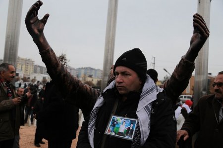 Haber merkezi- Diyarbakır'ın merkez Kayapınar Belediyesi tarafından Rojava Parkı'nda yaptırılan Roboski Anıtı, Roboskili ailelerin de katılımıyla kitlesel bir törenle açıldı. Yaklaşık 3 aylık bir süre zarfında heykeltıraş Suat Yakut tarafından yapılan anıtta, katliamda yaşamını yitirenlerin isimleri, Roboskili anneleri temsilen gökyüzüne avuçlarını açmış şekilde oturan bir kadın figürü ile katliamı gerçekleştiren savaş uçaklarına ait füzeler bulunuyor. Törene Roboskili ailelerin yanı sıra BDP Eş Genel Başkanı ve Diyarbakır Büyükşehir Belediyesi adayları Gültan Kışanak ile Fırat Anlı, BDP il ve ilçe yöneticileri, Barış Anneleri Meclisi üyeleri, İHD Diyarbakır Şube Başkanı Raci Bilici, MEYA-DER Başkanı Leyla Ayaz, STK temsilcileri, Kayapınar Belediyesi çalışanlarının yanı sıra çok sayıda yurttaş katıldı.